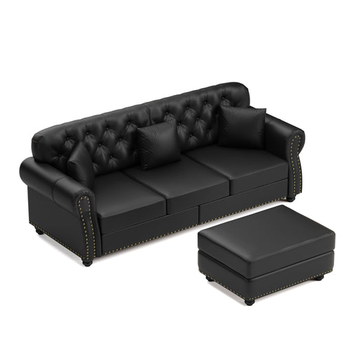 Sleek track arms with tapered wooden legs: Enhance visual appeal with a modern silhouette and added structural stability Black faux leather uphols...