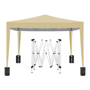 10'X10' Folding Canopy With 4 Removable Sidewalls Outdoor Event Shelter UPF 50+ Gazebo Portable Tents For Parties Beach Camping Wedding Ez Pop Up Canopy 4 Pieces Weight Bag + Carry Bag - Beige
