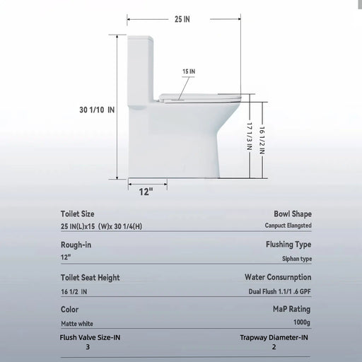 View full detailsPowerful Quiet Flush: Dual flush system with 1.24/1.6 GPF and 800g MAP rating ensures effective waste removal with minimal noise and water usage. ...