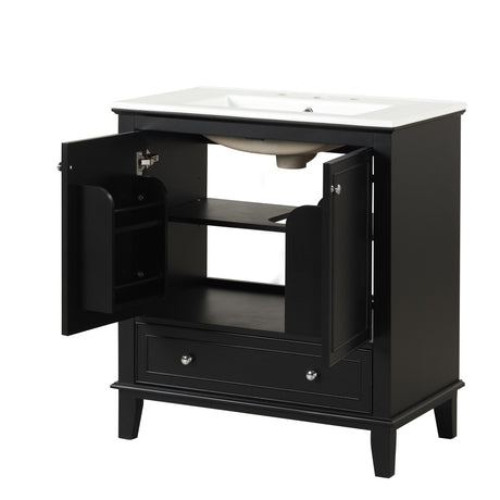 $54883Unit price /Unavailable30" Bathroom Vanity With Sink, 1 Door With Shelf And 3 Drawers, Soft Close Door - Black