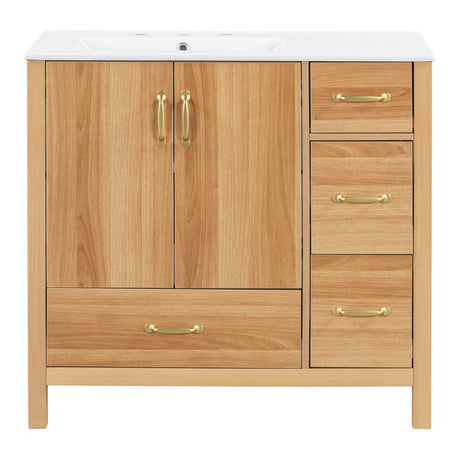 36" Bathroom Vanity With Sink, 2 Tip Out Drawers, Soft Close Hinges