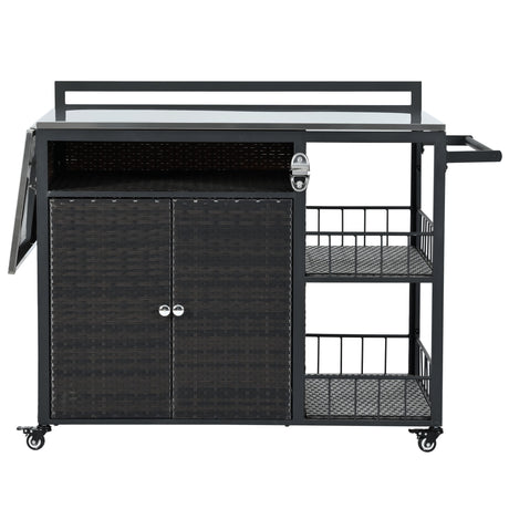 Outdoor Grill Table For Big Egg Style Bbq Metal Grill Cart With 2 Folding Panels Metal - Black