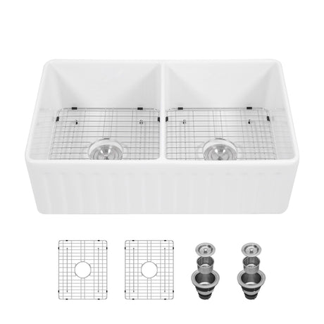 $51335Unit price /UnavailableSink 33" Double Bowl Apron Front Kitchen Sink 50 / 50 - White