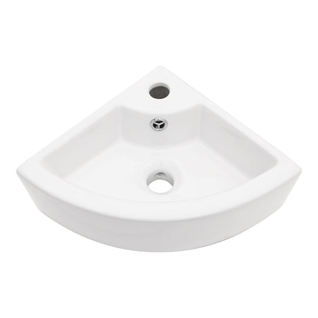 Triangle Porcelain Wall Mount Vessel Sink With Single Faucet Hole & Overflow - White