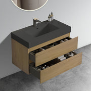 Alice - U092-Alice36W-106 Natural Oak Bathroom Vanity With Sink, Large Storage Wall Mounted Floating Bathroom Vanity For Modern Bathroom, One-Piece Black Sink Basin Without Drain - Walnut / Black