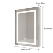 26" X 20" Bathroom Medicine Cabinet With LED Mirror, Anti-Fog, Waterproof, 3000K~6000K Single Door Lighted Bathroom Cabinet With Touch Swich, Dimmable, Recessed Or Surface Mount (Left Door) - Silver