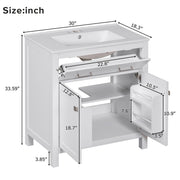 Bathroom Vanity With Ceramic Sink, Modern Single Bathroom Cabinet With 2 Doors And A Shelf, Soft Close Doors - White