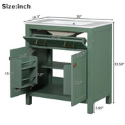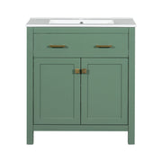 Bathroom Vanity With Ceramic Sink, Modern Single Bathroom Cabinet With 2 Doors And A Shelf, Soft Close Doors - Green