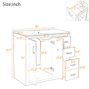 36" Bathroom Vanity With Sink, Storage Cabinet, Freestanding Set With 3 Drawers & Soft Closing Doors - White