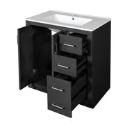 Bathroom Vanity With Sink, Storage Cabinet, Freestanding Set With 3 Drawers & Soft Closing Doors - Black