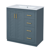 Bathroom Vanity With Sink, Storage Cabinet, Freestanding Set With 3 Drawers & Soft Closing Doors - Blue