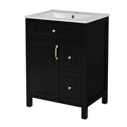 Elegant Bathroom Vanity With Ceramic Sink, Soft Close Doors And Drawers, Double Storage Racks