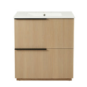 Fluted Bathroom Vanity With Sink, Full Extension Drawers, Soft Close Slides - Natural