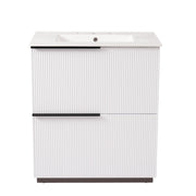 Fluted Bathroom Vanity With Sink, Full Extension Drawers, Soft Close Slides - White