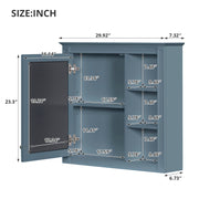 Wall-Mounted Medicine Cabinet With Mirror, Adjustable Shelves, Rectangular Design - Blue