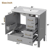 Bathroom Vanity With Sink, Soft Close Door, Handles Ample Storage - Gray
