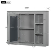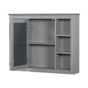 Wall Mounted Medicine Cabinet With Mirror And 6 Open Shelves, Bathroom Storage Cabinet - Gray