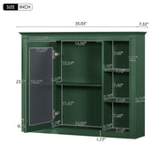Wall Mounted Medicine Cabinet With Mirror And 6 Open Shelves, Bathroom Storage Cabinet - Green
