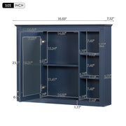 Wall Mounted Medicine Cabinet With Mirror And 6 Open Shelves, Bathroom Storage Cabinet - Blue