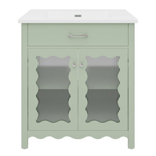 View full detailsCompact Dimensions: Measuring 21.6*12.2*26.4 inches, this vanity fits well in various space configurations. Modern Design: Features a wave-patte...