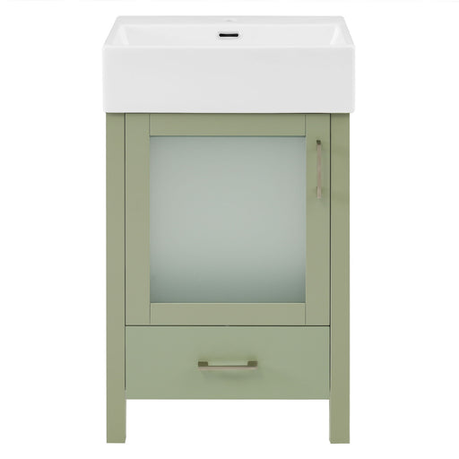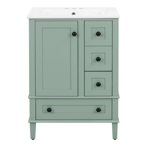 Compact Size: 24" wide x 18.3" deep x 34" high – fits well in smaller bathrooms while maximizing usable space. Durable Ceramic Sink: Scratch-resis...
