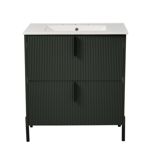 View full detailsStylish 30" Bathroom Vanity: This freestanding green vanity with silver handles fits any décor style. Door and drawer grooves add artistic flair. ...