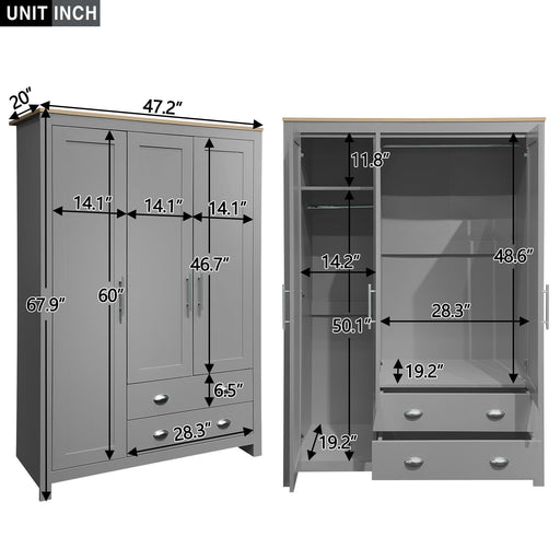 View full detailsLarge Capacity: Designed to meet extensive storage needs with two free hanging rods for organized clothing. Solid Construction: Made from pine woo...