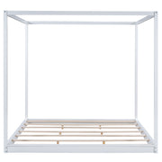 Queen Size Canopy Platform Bed With Support Legs - Natural