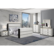 Isaiah - Chest With Upholstered Frame, LED Lighting, Block Feet - White / Black