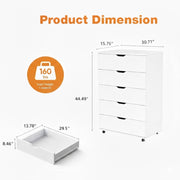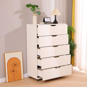 5 Drawer Rolling Dresser With Caster Wheels, Mobile Storage Cabinet For Bedroom - White