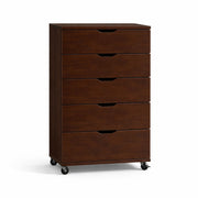 5 Drawer Rolling Dresser With Caster Wheels, Mobile Storage Cabinet For Bedroom - Dark Brown