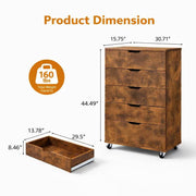 5 Drawer Rolling Dresser With Caster Wheels, Mobile Storage Cabinet For Bedroom - Rustic Brown