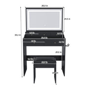 Makeup Vanity Set With Power Outlet, Hair Dryer Holder, And Adjustable Lighting - Black