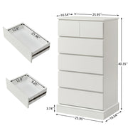 6 Drawer Tall Dresser With Concealed Handles, Vertical Storage Cabinet For Bedroom - White