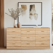 Modern Natural 9 Drawer Dresser For Bedroom With Ample Storage, Sturdy & Safe - Natural
