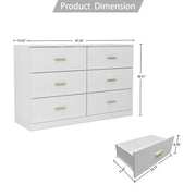 Modern White 6 Drawer Dresser For Bedroom, Ample Storage Wide Chest Of Drawers, Sturdy & Safe - Antique White