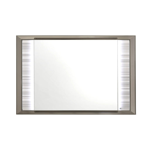 Elegant Design: Wood frame layered with mirror accents adds a touch of glam to any room. Unique Finish: The silvery champagne finish frames the mi...