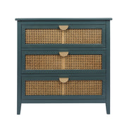 3 Drawer Cabinet Natural Rattan Suitable For Bedroom - Blue