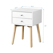 Modern Side Table With 2 Drawer, Mid-Century Storage Cabinet For Bedroom - White