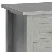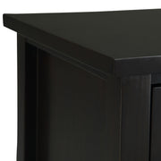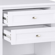 • Features two (2) spacious drawers, open bottom storage area, brushed nickel drawer pulls and metal drawer glides