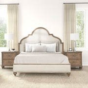 3 Piece Eastern King Bed Set With 2 Nightstands, Upholstered Headboard, USB Ports - Oak / Rustic