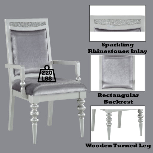 View full detailsElegant Design: The Maverick side chair features a high rectangular backrest with a wooden frame adorned with sparkling rhinestone inlays, ad...