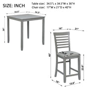 5 Piece Dining Table Set, Wooden Dining Square Table Set For 4, Counter Height Kitchen Table Set With Square Table And 4 Upholstered Chairs - Gray