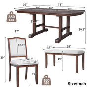 - Complete 6-Piece Set: Includes a classic rectangular dining table, 4 upholstered chairs, and a bench, perfect for stylish and functional dining.