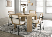 Bowen - Round Dining Table With Cream Color Upholstered Chairs (Set of 5) - Oak Finish