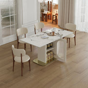 Dining Table Set With Storage, 6 Chairs For Kitchen - White