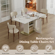 Dining Table Set With Storage, Includes 4 Chairs For Kitchen - White