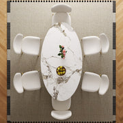 Oval Sintered Stone Dining Table With 6 Chairs - Brown / White