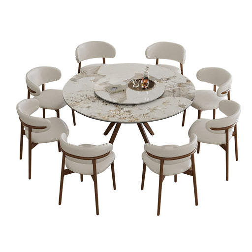 Sintered Stone Dining Table: Elegant design, scratch-resistant, wear-resistant, and heat-resistant surface. Unique Base Design: Sturdy wooden fram...