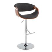 Curvo - Mid-Century Modern Adjustable Barstool With Swivel With Straight T Footrest (Set of 2) - Chrome / Walnut / Charcoal